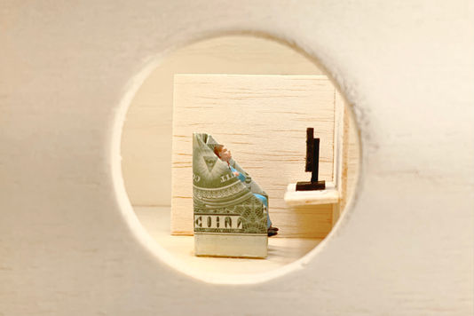 Transforming the conventional structure of a ballot box, this body of work serves as a physical manifestation of the power of a vote in American politics, highlighting sociopolitical injustices plaguing contemporary society. The understated exteriors of each ballot box directly contrast with their elaborate interiors, demonstrating the privilege of observing these issues from afar and the fragmented understanding that ensues. Nods to the complex interior narratives are observed with the stamp choice on each envelope and the colors of the figures’ clothing. Orientation is strategically considered in each piece, with the physical left and right sides of the boxes being used to parallel their political counterparts. To see the full picture, the audience must literally view the work “from both sides.” By forcing the viewer to approach these issues from differing perspectives, the body of work encourages the audience to question their own preconceived notions and challenge them.